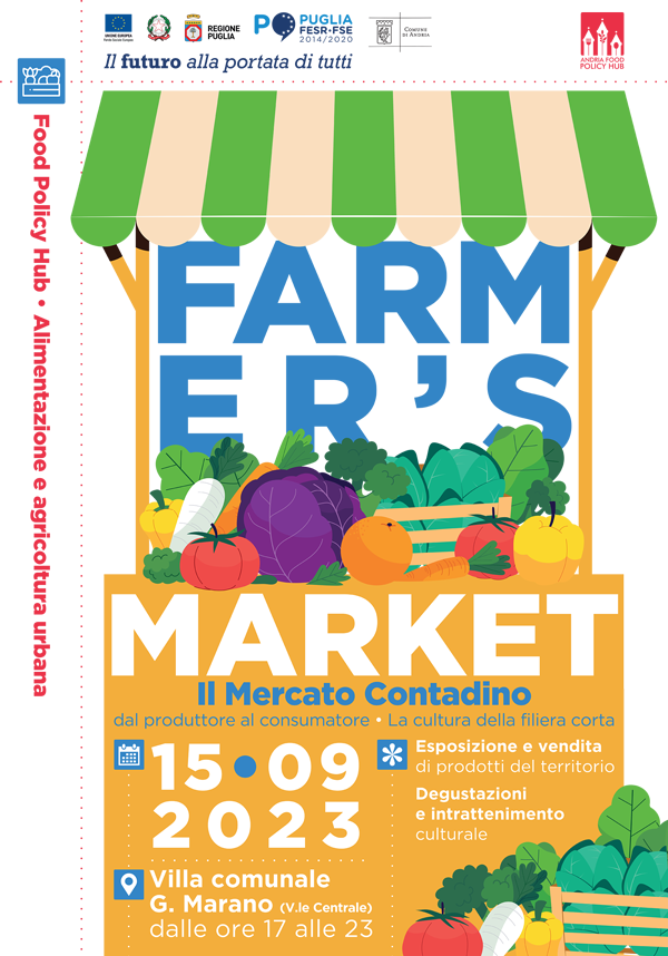 Una rete di produttori, contadini e trasformatori che si incontrano e animano luoghi dove fare la spesa, conoscersi e mangiare in compagnia. Un mercato gestito da una comunità, con valori e regole condivisi. A questo aspira il secondo esperimento di Mercato Contadino della città di Andria. Di seguito, alcune linee guida per potersi candidare all’evento e per poter essere presenti con i propri prodotti nel giorno del mercato che si terrà il giorno 15 Settembre 2023, dalle ore 17.00 alle ore 23.00, presso la Villa Comunale “G. Marano”.
